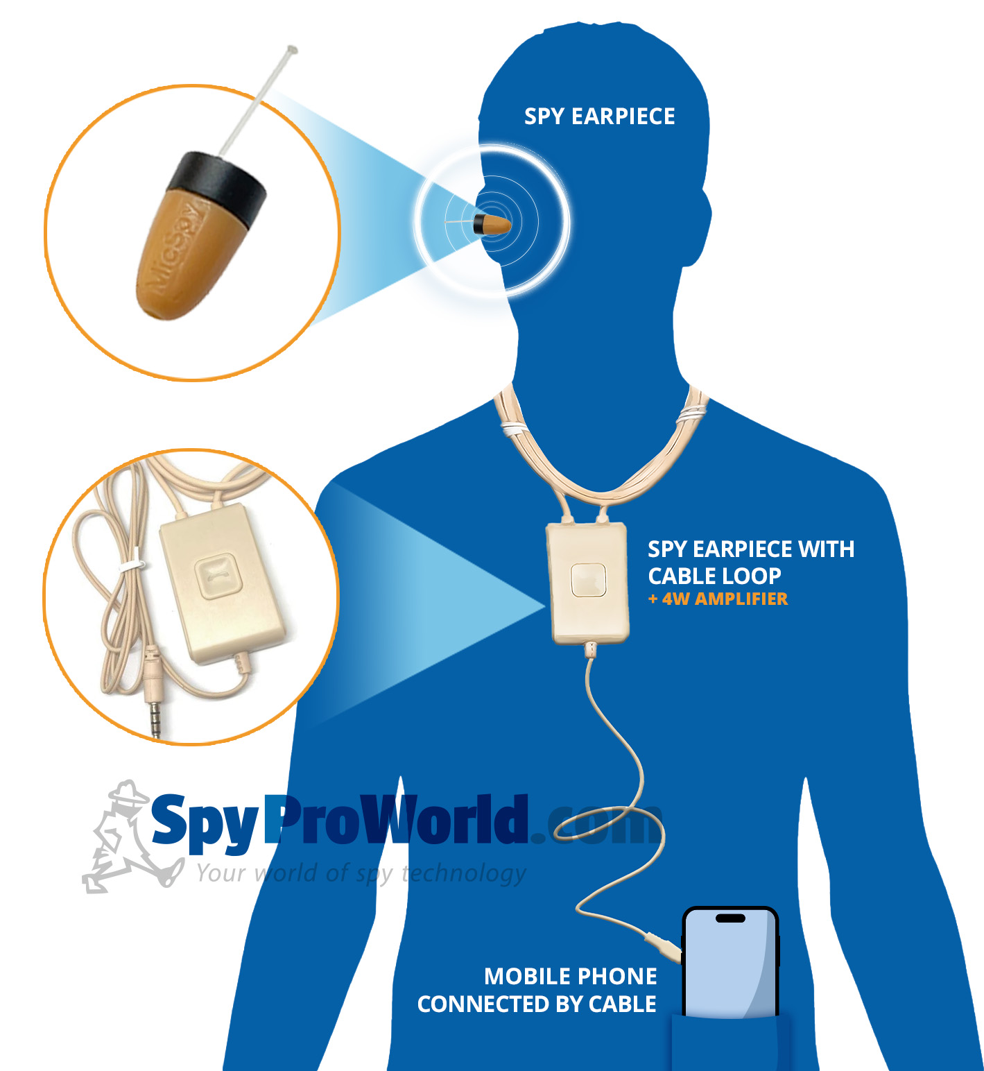Thanks to its miniature dimensions, the invisible earpiece can be inserted directly into the ear, making it completely invisible to the outside world! What"s more, the earpiece works wirelessly, so you don"t have to worry about cables sticking out of you. The invisible earpiece is supplied with a special induction loop, which is concealed under the clothes and ensures sound transmission to the earpiece. This induction loop is connected to the mobile phone. The induction loop also includes a microphone and a 4W amplifier to communicate with your accomplice. The times when your induction loop did not work and nobody heard you are in the past. Buying this micro earpiece with induction loop will give you a very good value for your money. The earpiece volume can be adjusted directly on your mobile phone. With the earpiece plugged into your ear, you can hear all the sounds clearly. The invisible earpiece perfectly isolates sound inside your ear.